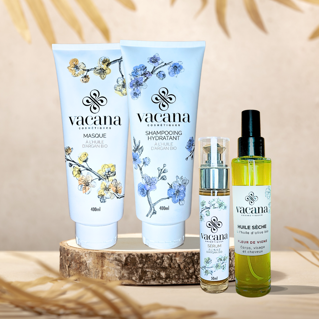 Ce rituel vous offre une routine complète pour hydrater, réparer et renforcer la chevelure tout l'hiver. Composé du Shampooing Hydratant (400 ml), du Masque Botox (400 ml), du Sérum (50 ml) et d'une Huile Sèche (100 ml) parfumée au choix entre Coconut, Fleur de Tiaré, Fleur de vigne, et Fleur d'olivier. Ce rituel complet apporte nutrition et hydratation en profondeur pour des cheveux doux et brillants et une peau hydratée.